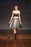 Gemma Slack is renowned for creating tailored garments from a combination of unusual materials, and Spring/Summer ’09 is a perfect demonstration of her exceptional skill. She was inspired by fetishised super-heroines and metal girls: leather and suede sit side-by-side by aluminium and steel metals to provide modern women with the perfect garb for asserting their very own super-powers. Feminine curves are highlighted via strategic cuts, and modern-day Wonderwomen clad in leather bikinis and metal are taking the world, and their sexuality, into their own hands.