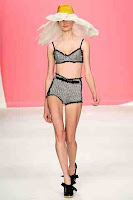 Flower power ruled at Moschino Cheap & Chic, in the form of inverted daisy sun hats, big floral prints and sure to be a sell-out flower-shaped sunglasses. More sixties influence was evident in the slogans (the likes of ‘peace,’ ‘amore’ and ‘shocking’), but this was no Active Resistance-style rebellion. A goose-emblazoned dress epitomised the overall mood - kooky and fun.