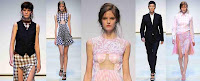 Christopher Kane took London by storm in 2007 and has been impressively consistent ever since. Did he maintain that momentum for Spring ’10? Why, yes he did. Kane’s genius lies in the way he takes a starting point and builds a collection around it that veers off-piste in just the right quantities. The starting point here was religious cultism and Lolita, apparently. Cue tablecloth-check dresses slit up both thighs; baby- pink and blue chiffon overlays; and high necklines. Where tailoring featured it was decidedly mannish. There was also a dose of corset/bust detailing that’s been quite prevalent elsewhere this week.